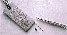 この「IDネームタグ・アーキスト」は、プレート部分に超軽量で変色・変質のない純チタンを使用。また、単なる刻印ではなく半永久的に消えることのない彫刻でデータを保存。さらに髪の毛などを埋め込めるヘアホールを採用することで、DNA鑑定などによる確実な本人の証明が可能となっています。(PAT)